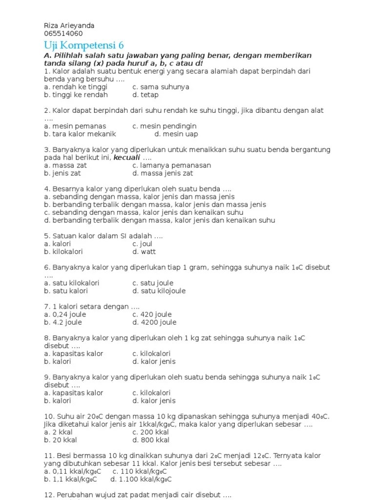 Besi Bermassa 10 Kg Dinaikkan Suhunya Dari 2°C Menjadi 12°C Ternyata Kalor Yang Dibutuhkan Sebesar - Latihan Soal Ipa Kalor Kelas 7 Smp Kurikulum 2013 K13 : (1) kapasitas kalor ( c ) :